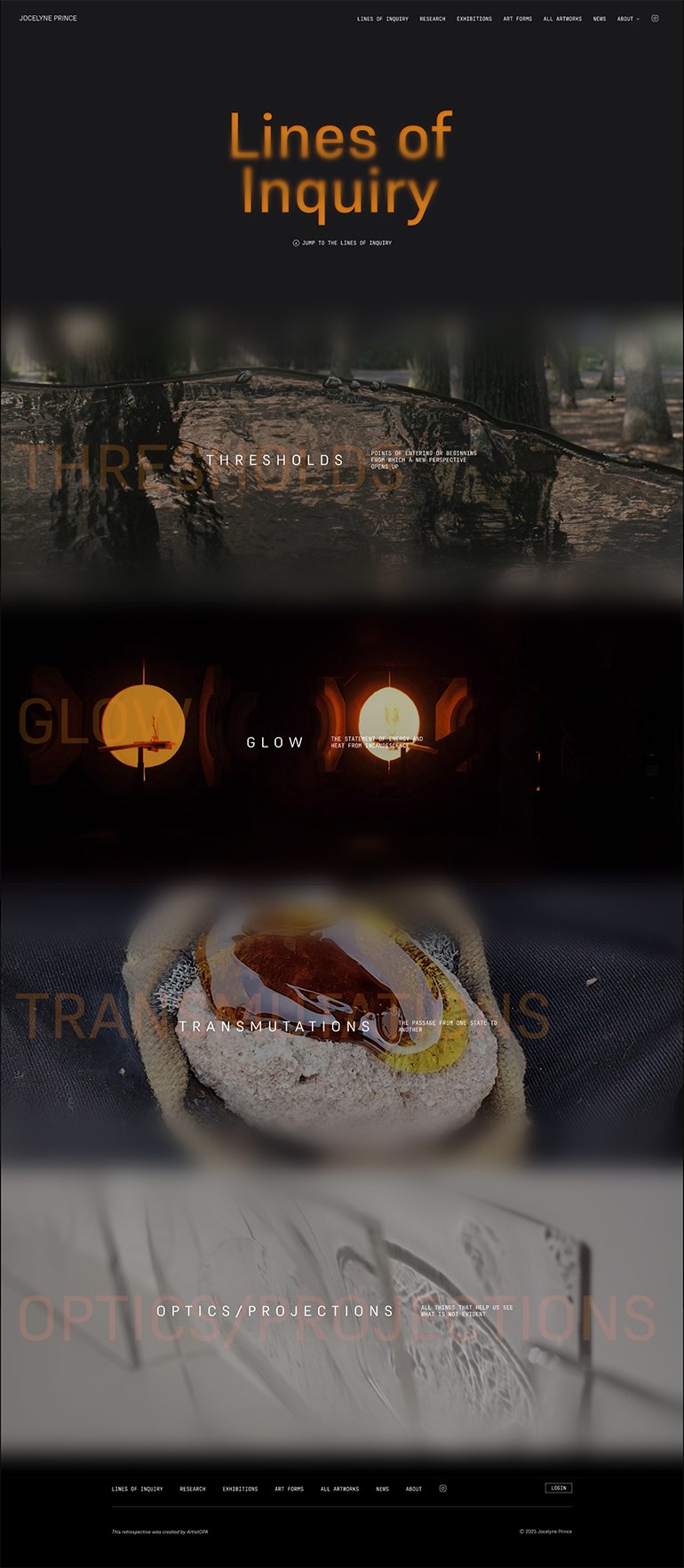 Jocelyne Prince is a conceptual glass artist and professor in the Glass Department at Rhode Island School of Design (RISD). She requested a custom graphic design for her Retrospective, to give it her personal touch and make sure it truly resonates with her body of work.